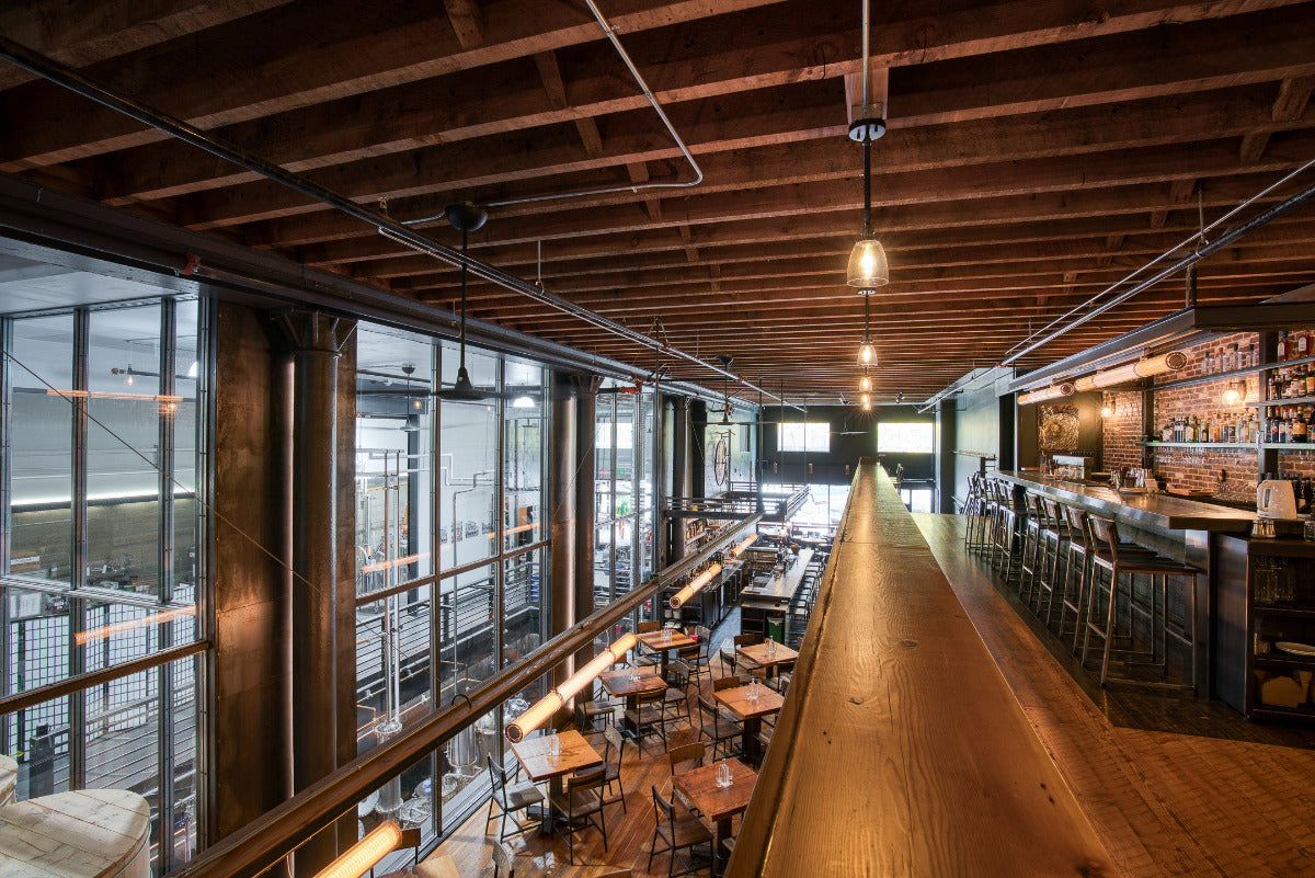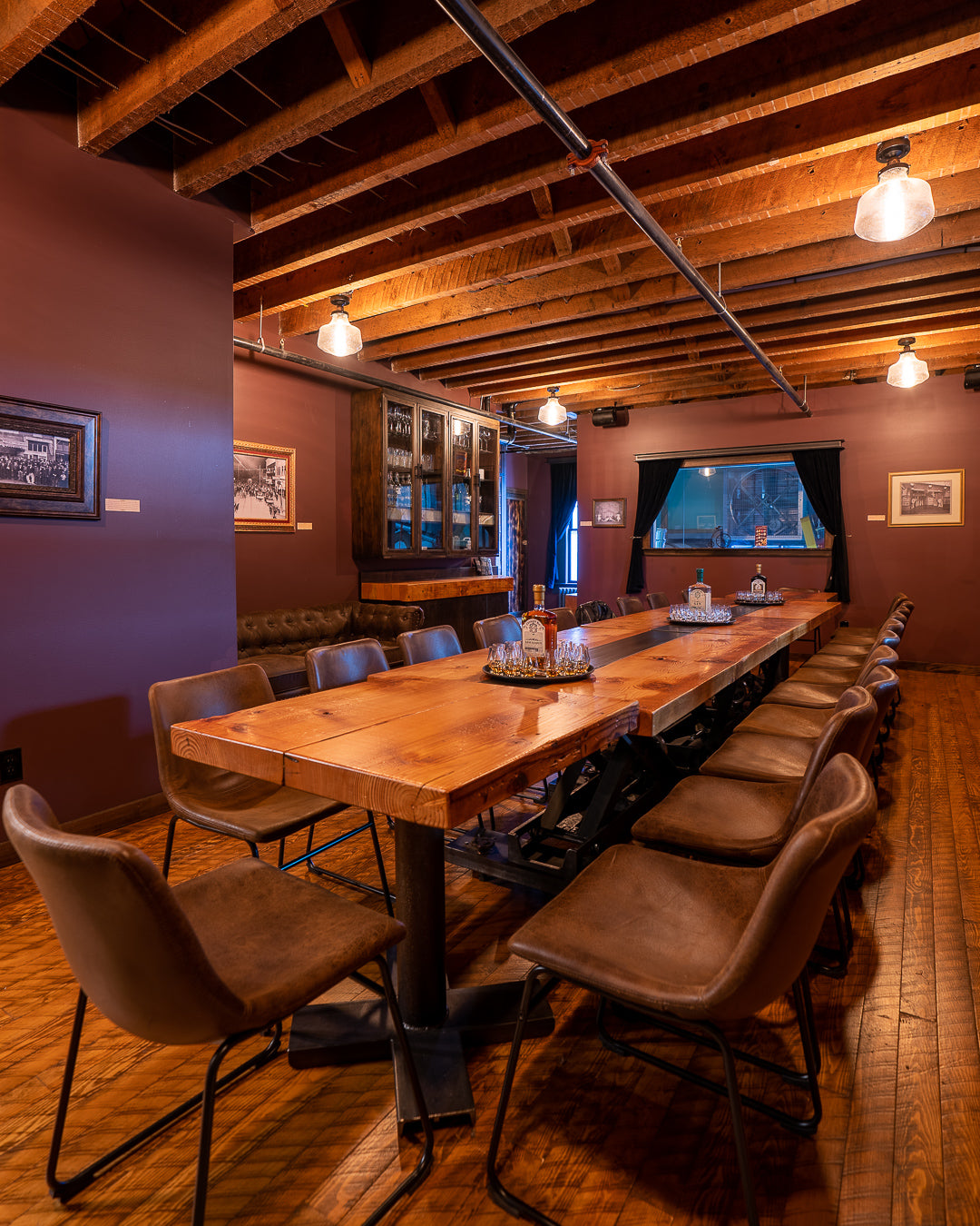 Located on the Mezzanine level of Penny Farthing Bar & Restaurant, the Speakeasy boasts a sophisticated and relaxing atmosphere to welcome private events. With the ability to customize the floor plan to fit your party's needs, this is a beautiful space for small to mid-sized gatherings. Offers comfortable couches and adjustable, hand-crafted tables plus 80" screen and surround sound for presentations. The Speakeasy provides a view into the distillery's production space and a private restroom. These spaces are ideal for wedding rehearsal dinners and corporate events or celebrations for up to 50 people.